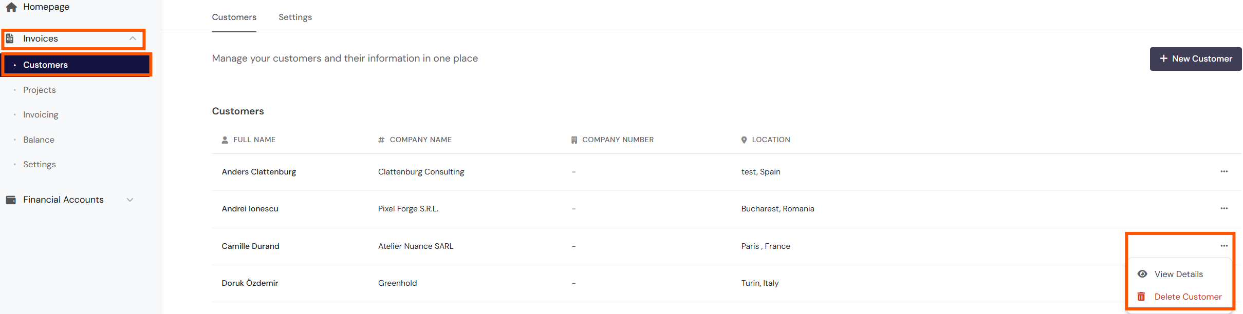 - Navigate to the Invoices > Customers section of your dashboard.